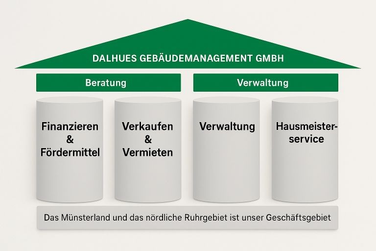 Das bestehende Team aus erfahrenen Immobilienverwaltern steht weiterhin für höchste Kompetenz in der Betreuung von Wohnungseigentümergemeinschaften und Mietobjekten. Die Verwaltung von Immobilien erfordert nicht nur Fachwissen und rechtliche Expertise, sondern auch ein starkes Netzwerk an Dienstleistern und Handwerkern. Dalhues Immobilien bietet Eigentümern eine professionelle, transparente und zukunftsorientierte Verwaltung, die Werte langfristig sichert.